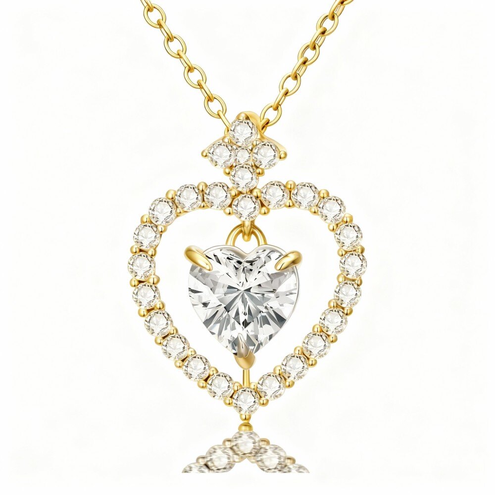 Odkryj nasz oszałamiający naszyjnik z zawieszką w kształcie serca z 10-karatowe Złoto z olśniewającym kamieniem Moissanite.