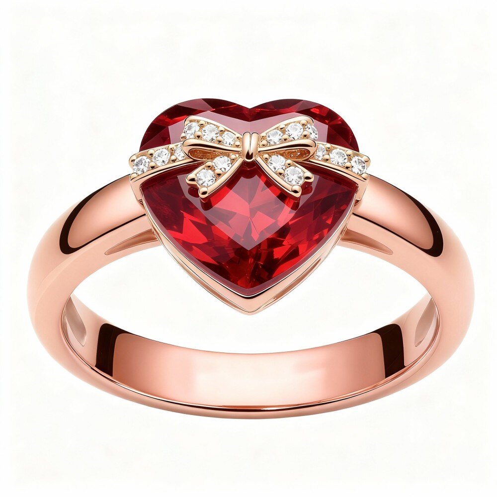 Świętuj miłość z naszym wyśmienitym pierścionkiem zaręczynowym z rubinem w kształcie serca wykonanym z 18-karatowego złota, który pięknie łączy ponadczasową elegancję z nowoczesnym rzemiosłem.