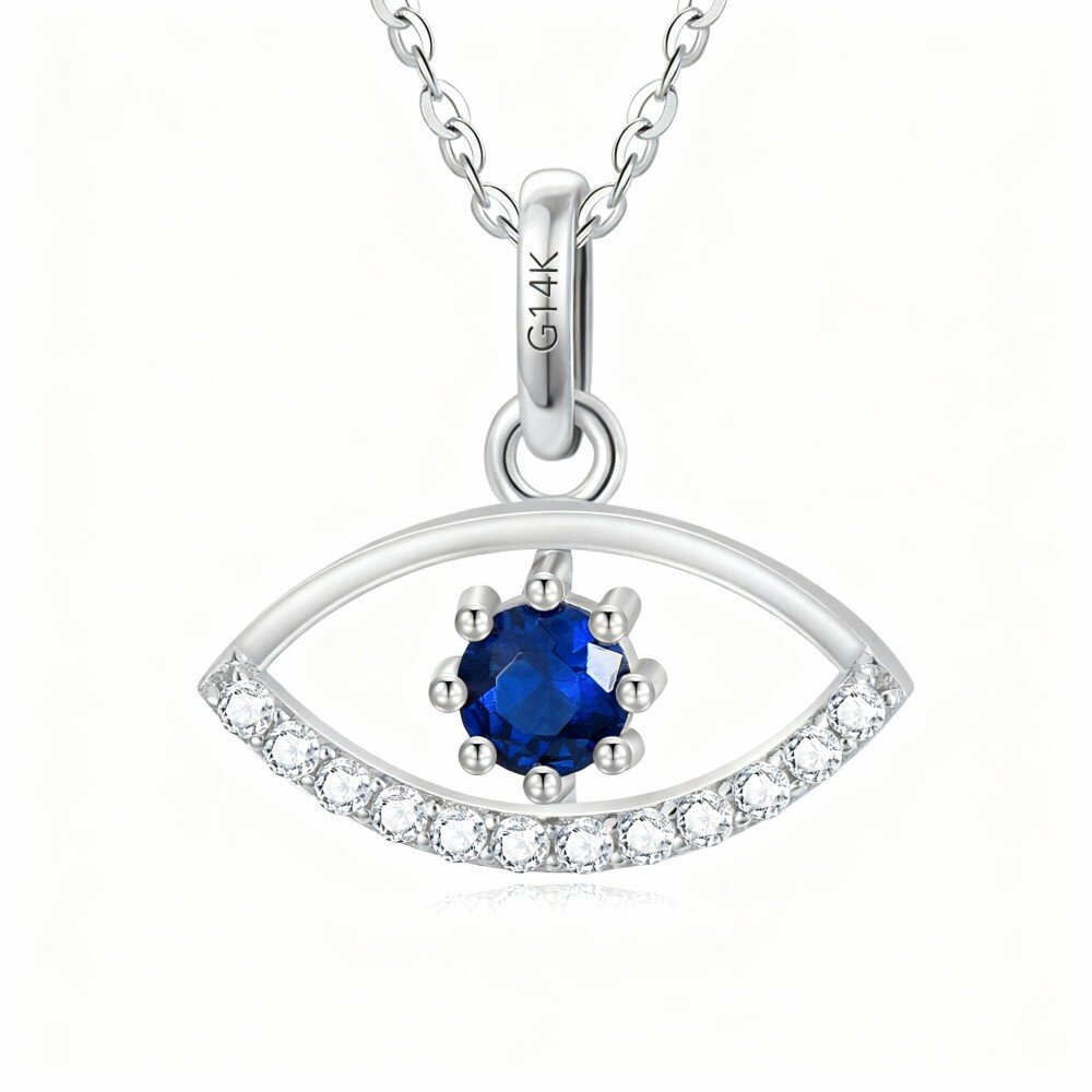 Odkryj urok naszego naszyjnika z wisiorkiem wykonanym z 10-karatowego złota, prezentującego piękny wzór Złego Oka z niebieską cyrkonią sześcienną, który łączy w sobie elegancję i symbolikę ochronną.
