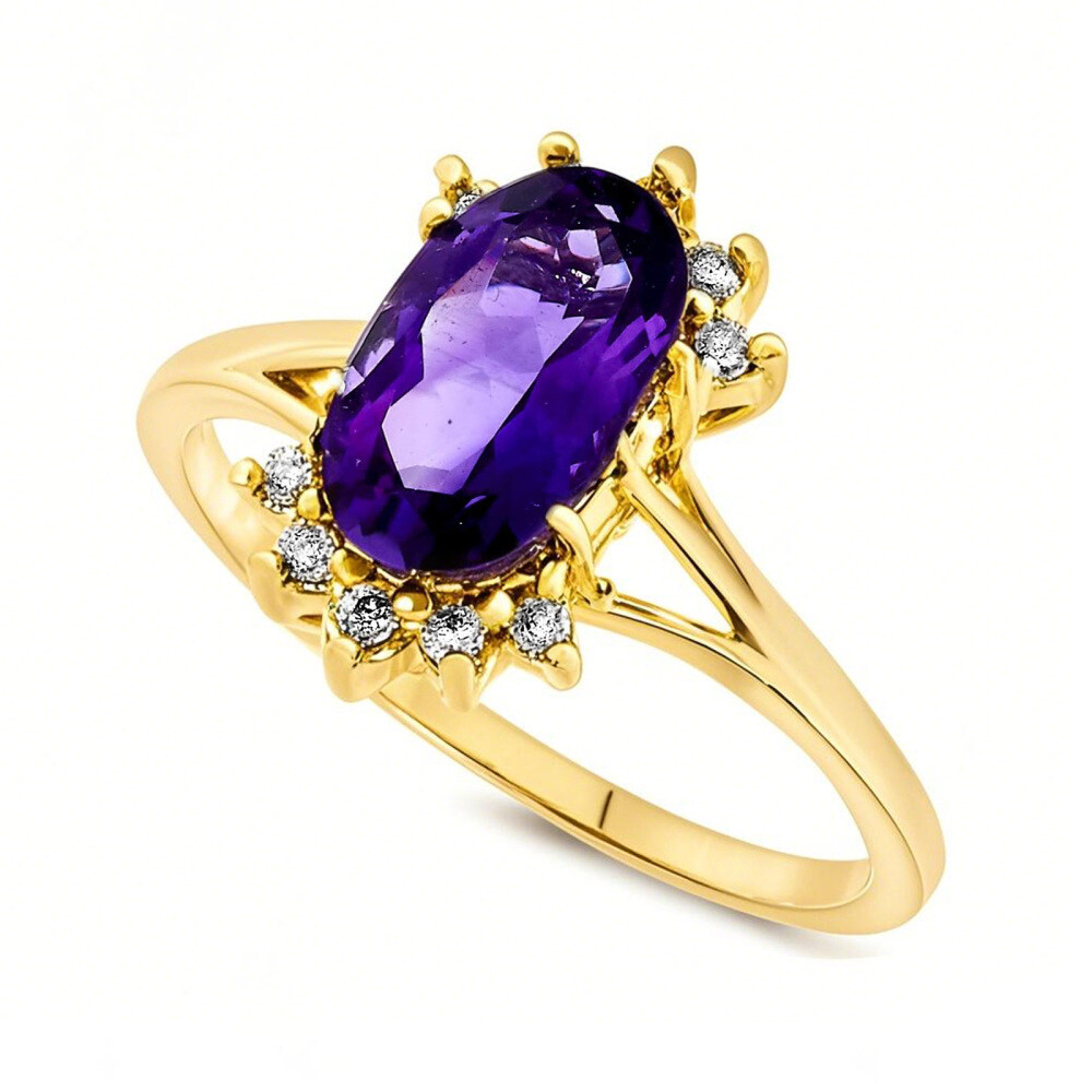 Odkryj idealne połączenie elegancji i personalizacji dzięki naszemu oszałamiającemu pierścionkowi zaręczynowemu Halo z 14-karatowego złota, z hipnotyzującym centralnym kamieniem ametystu otoczonym olśniewającymi kamieniami bocznymi Moissanite. Zaprojektowany specjalnie dla kobiet, które cenią wyrafinowanie biżuterii, ten wykwintny element emanuje całkowitą wagą 1 CT. T.W., co czyni go niezapomnianym symbolem miłości i zaangażowania.