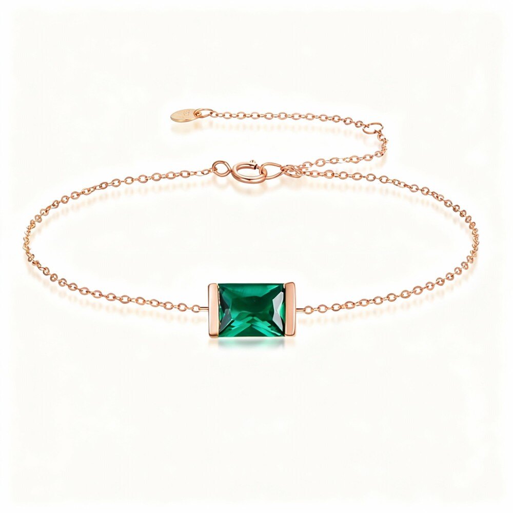 Podnieś poziom swojej gry dodatków dzięki naszej wykwintnej 14-karatowej złotej bransoletce na kostkę z pojedynczą warstwą uroku, z oszałamiającym kwadratowym szmaragdem, który pięknie kontrastuje z ciepłymi odcieniami złota. Ta bransoletka na kostkę zaprojektowana specjalnie dla kobiet to idealne połączenie elegancji i uroku, co czyni ją niezbędnym dodatkiem do każdej kolekcji biżuterii.