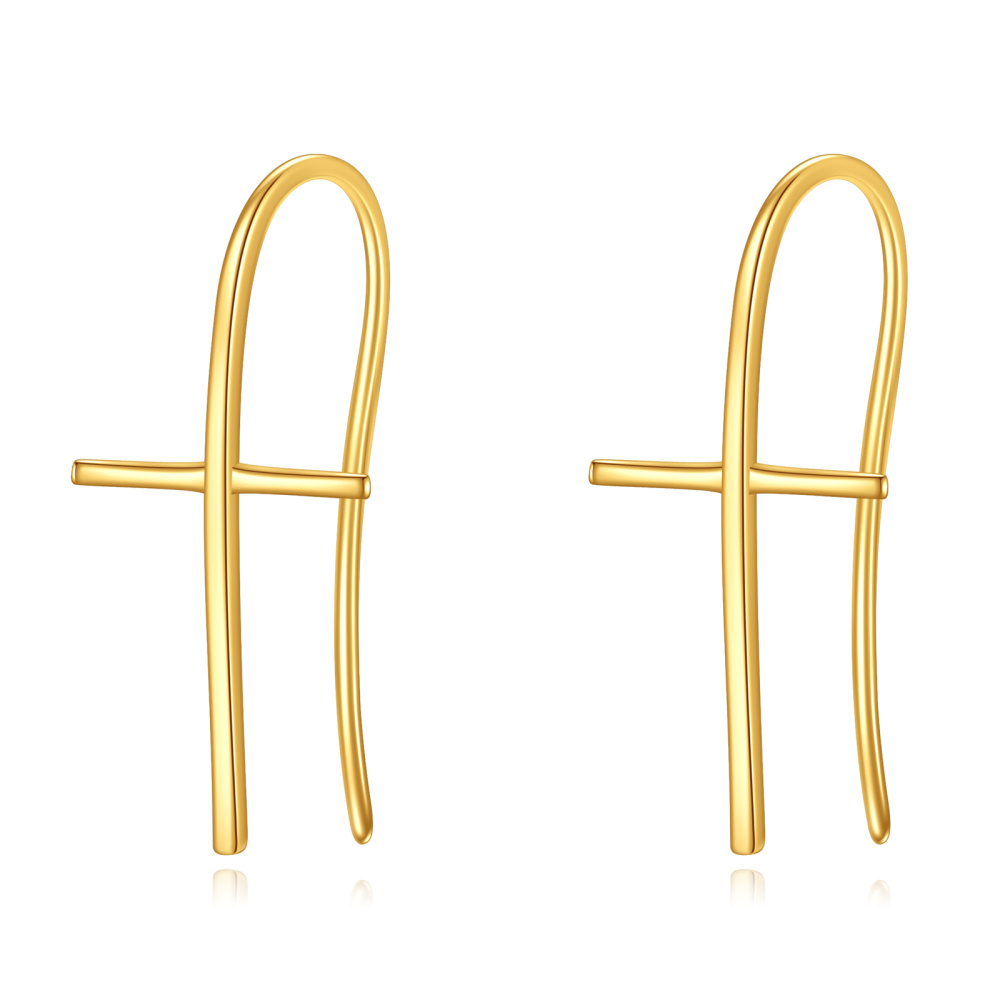 Odkryj urok naszych znakomitych kolczyków w kształcie krzyża z 18K złota, idealnych dla nowoczesnej kobiety, która ceni elegancję.