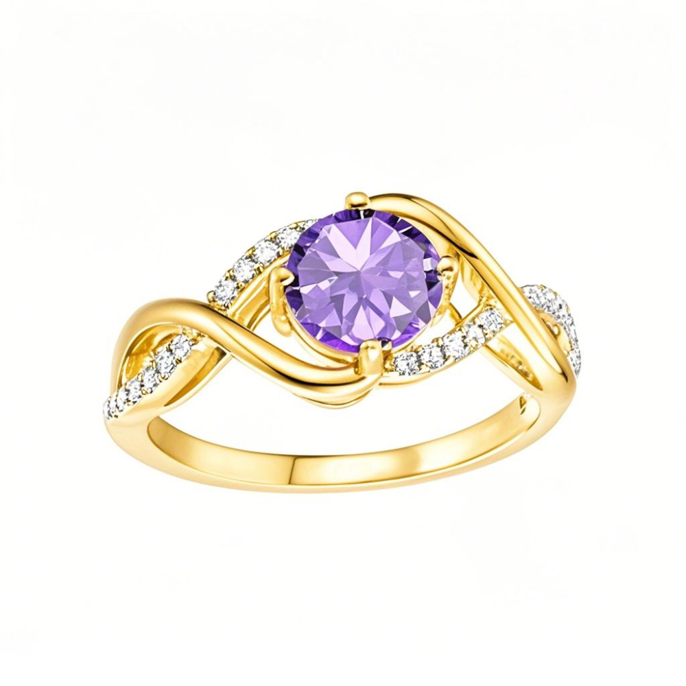 Wykonana z wysokiej jakości 18-karatowego złota obrączka ślubna o łącznej wadze 1 CT. T.W. zapewnia luksusowe uczucie na palcu. Duży ametystowy kamień centralny emanuje żywym kolorem i urokiem, podczas gdy lśniące kamienie boczne moissanitu dodają blasku i blasku całemu projektowi. Dostępne są opcje personalizacji, dzięki czemu możesz stworzyć naprawdę wyjątkowy element, który symbolizuje Twoje wieczne zaangażowanie i styl. Idealny na specjalne okazje lub codzienną elegancję, ten pierścionek jest ponadczasowym dodatkiem do każdej kolekcji biżuterii.