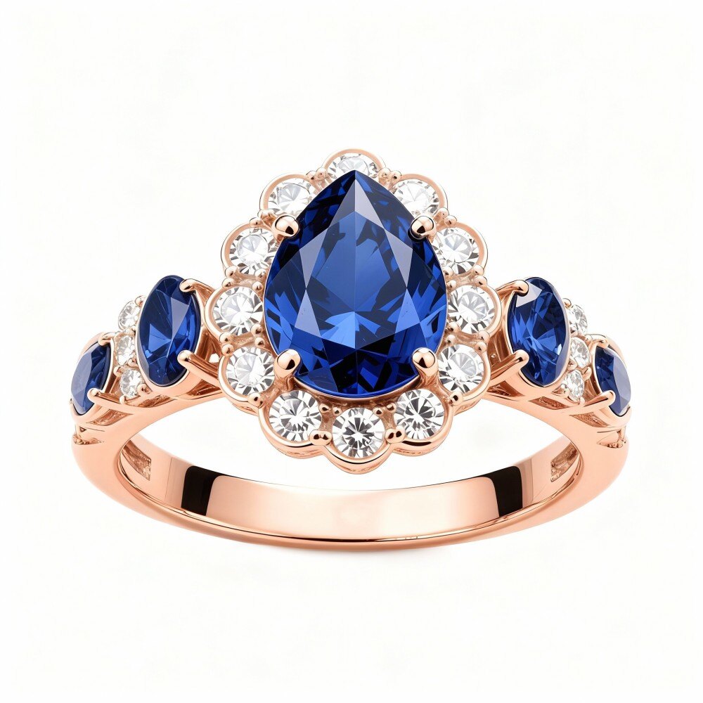 Crafted with the highest quality standards, our engagement ring boasts an exceptional polish and exquisite cut and symmetry, ensuring it shines brightly from every angle. The radiant Rose Gold setting enhances the beauty of the center Sapphire, providing a refined contrast that draws the eye. Ideal for marking your special occasion, this ring combines classic elegance with modern sophistication, making it a perfect choice for the woman who wants her love story to sparkle.