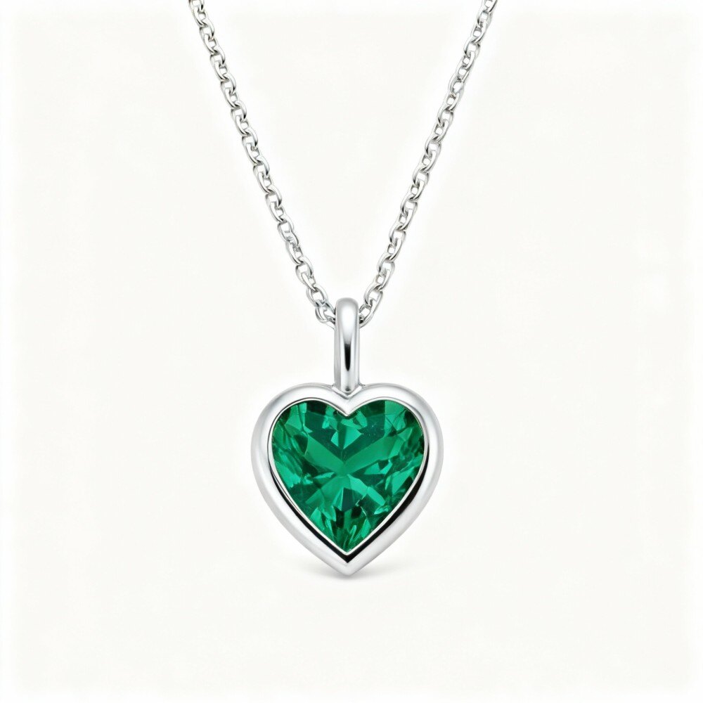 Elevate your style with our exquisite 18K White Gold Pendant Necklace, featuring a stunning lab-created emerald that perfectly symbolizes love and commitment—an ideal choice for couples or as a gift for the special woman in your life.