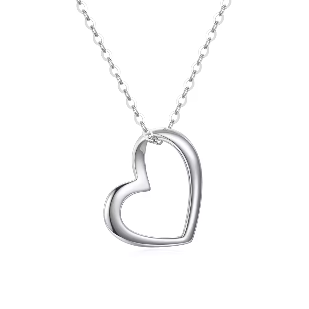Ten wykwintny naszyjnik, wykonany z błyszczącego 18-karatowego białego złota, prezentuje minimalistyczną zawieszkę w kształcie serca pozbawioną kamieni, podkreślając czysty urok i nieskazitelne rzemiosło, które definiuje Twój niepowtarzalny styl. Idealny na każdą okazję, bez wysiłku dodaje odrobinę wyrafinowanej elegancji do codziennego wyglądu lub specjalnych wydarzeń.