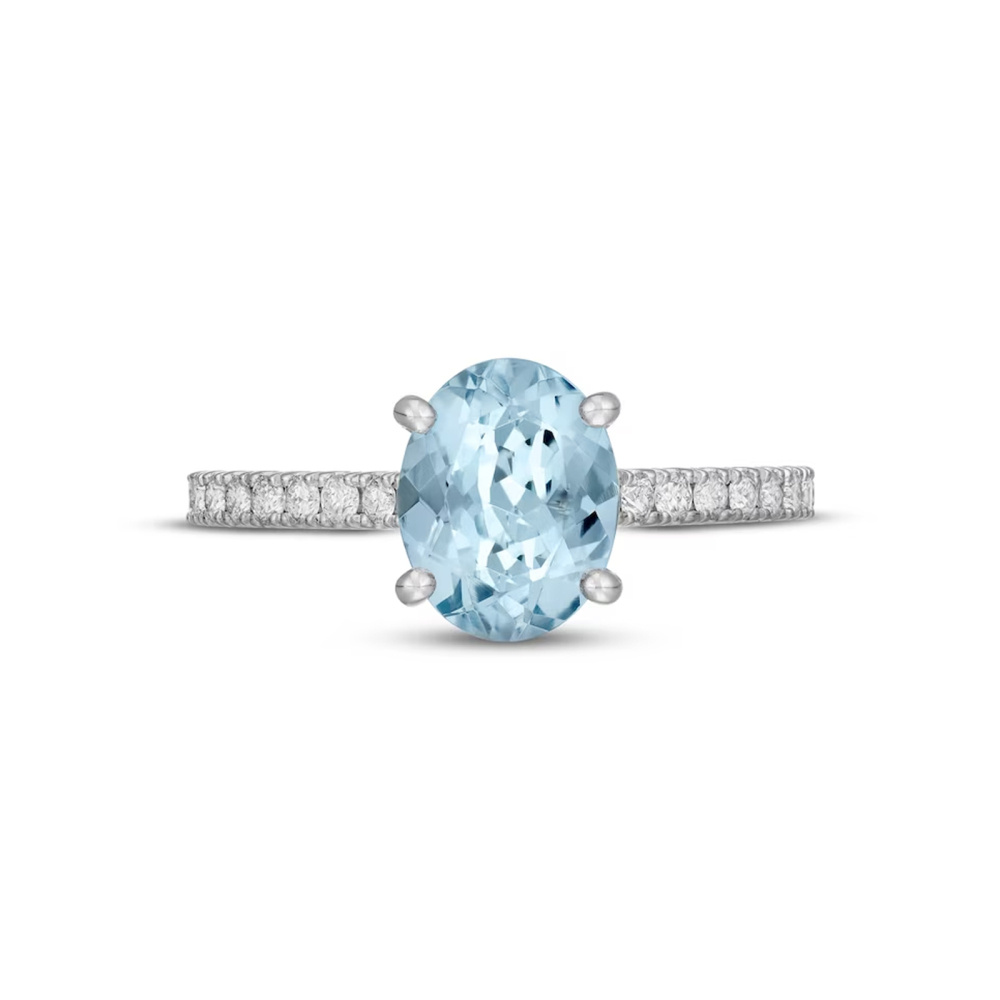 Przeżyj idealne połączenie elegancji i personalizacji dzięki naszemu oszałamiającemu pierścionkowi zaręczynowemu ze złota 18K, z urzekającym dużym kamieniem centralnym akwamarynu i olśniewającymi kamieniami bocznymi moissanitu, zaprojektowanym wyłącznie dla nowoczesnej kobiety. Ważący łącznie 1 CT. T.W., ten wykwintny element z białego złota może zostać dostosowany do indywidualnych potrzeb, aby odzwierciedlał Twoją wyjątkową historię miłosną, zapewniając, że będzie błyszczał pod każdym kątem, co czyni go idealnym symbolem zaangażowania i ponadczasowego piękna.