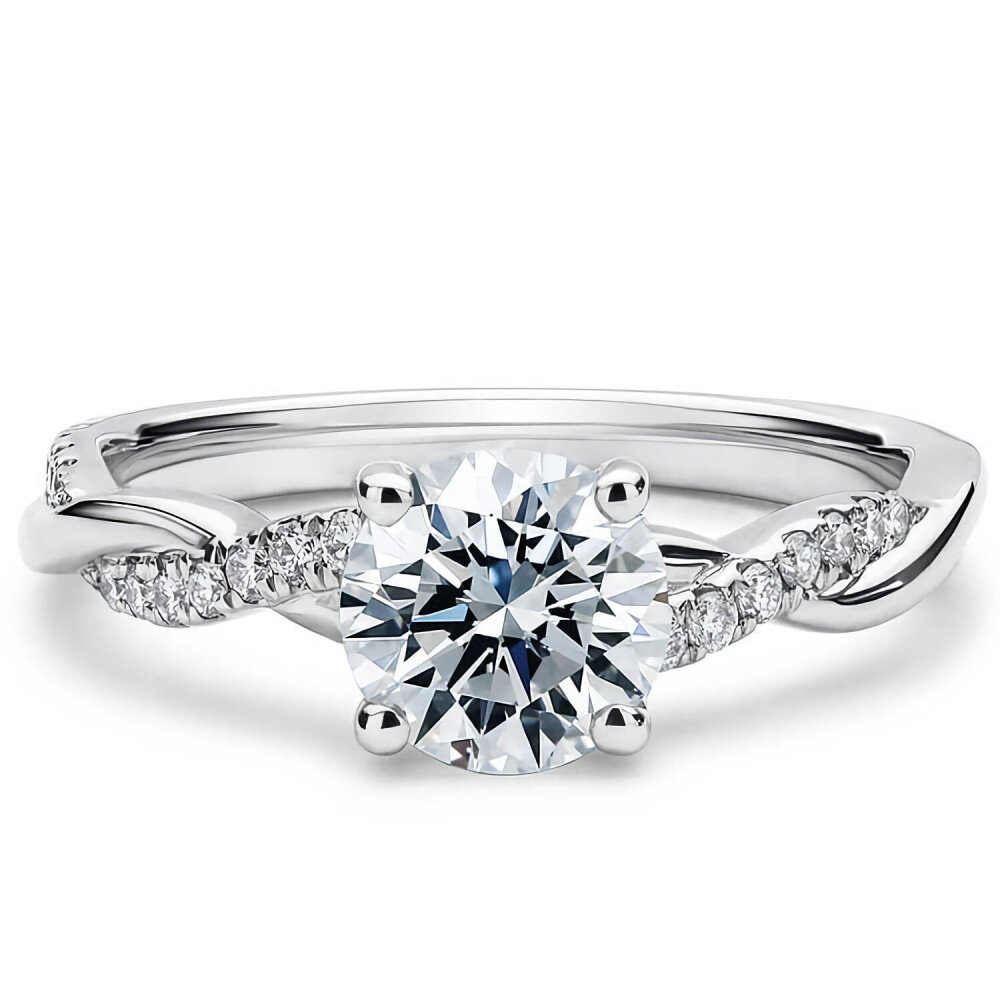Wykonany z wysokiej jakości 18-karatowego białego złota, ten pierścionek zaręczynowy łączy w sobie wyrafinowanie i trwałość z olśniewającym moissanitem, kamieniem centralnym, który lśni jaśniej niż diament. Dzięki łącznej masie 1,16 ct, ten starannie zaprojektowany pierścionek wyróżnia się na każdą okazję, a opcja spersonalizowanego grawerunku pozwala na dodanie serdecznej wiadomości, czyniąc go niezapomnianym prezentem, który uwieczni Waszą wyjątkową historię miłosną.