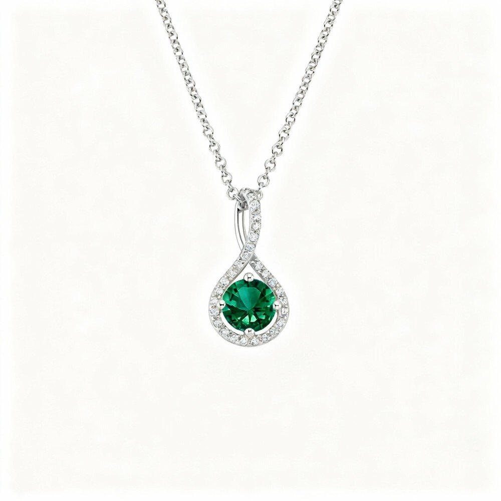 Elevate your style with our stunning Platinum Pendant Necklace, beautifully adorned with a sparkling lab-created emerald and shimmering diamonds.