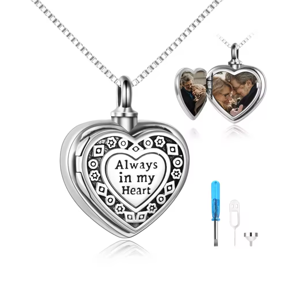 Odkryj nasz pięknie wykonany srebrny naszyjnik urnę, serdeczny i unisex element, który łączy elegancki srebrny design retro w ponadczasowym kształcie serca, zapewniając dyskretny sposób na trzymanie bliskich blisko.