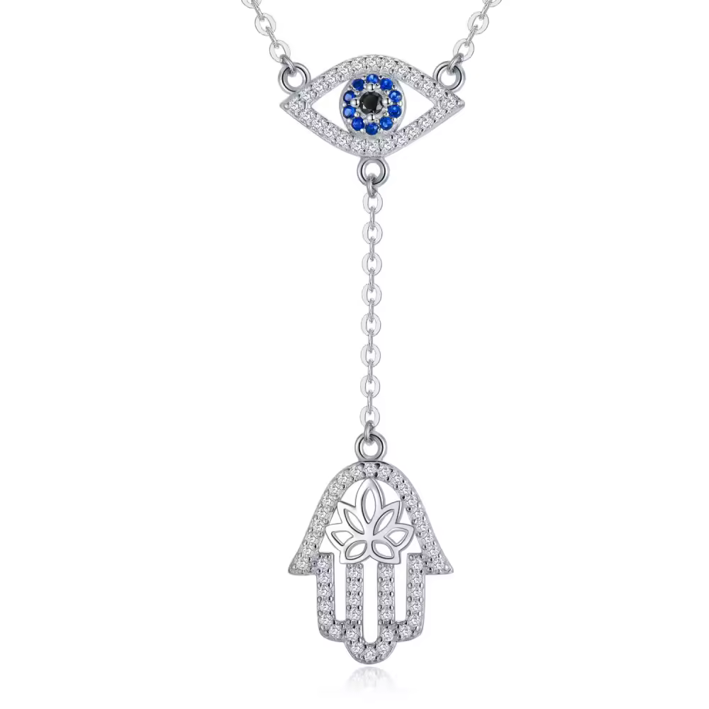 /sterling-silver-round-cubic-zirconia-evil-eye-hamsa-hand-non-adjustable-y-necklace-p85775129